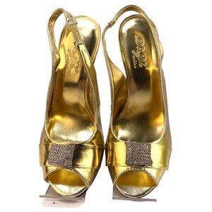 Item for sale: Db Dk Fashion Pump Women's Size 6.5 4" Heel Slingback Peep Toe Gold Rhinestone Detail