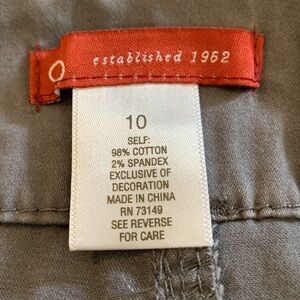 db established 1962 Embellished Shorts, Size 10 (See approximate measurements below), Gray. Waist 17”, Hips 20”, Length 14.5” (Measured laying flat). Good Condition. 343