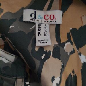 Like new. Has 4 pockets, 2 side & 2 chest with silver tone buttons. sz L. approx measurements laying flat: 26.5"L x 23"w x 25"L arms. Lightweight.