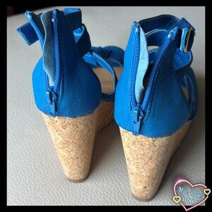 De Blossom Collection Blue Wedge Heel, Cork Platform Size 6.5