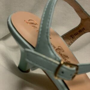 Chic light blue heels with elegant rhinestones straps. Perfect for any event.