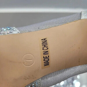 De Blossom Collection Silver Mesh Pointed Toe Stilletto Rhinestone Embellished Dress Pumps. Size 7. In great used condition with minor wear throughout! Please see all pictures and video for overall condition. Does not come with original box! #beyonce #silver #barbie