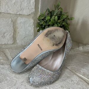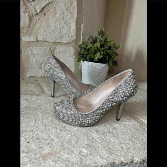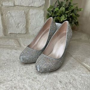 De Blossom collection Robin silver satin sparkling heels sz 7.5