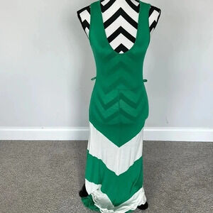Cute dress! I am unable to tell the size that I purchased as the tag has faded but it is likely a small. The material is kind of thin as you can see from the photos. It is in great condition. Has belt loops but does not come with a belt.