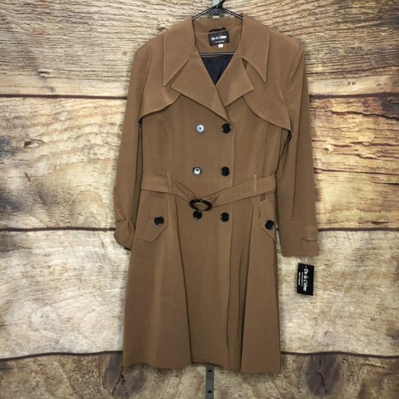 De La Creme Womens Size 16 US 1201 Double Breasted Trench Mac Coat Brown NEW