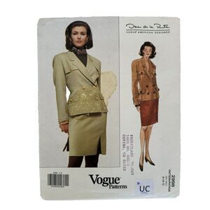 De La Renta Vintage VOGUE Sewing Pattern 2998 Jacket Skirt Suit 8-12 UNCUT *READ