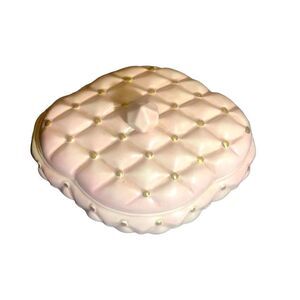 De La Rosa 319 California vintage quilted ceramic trinket box. Pink and gold. 8” x 6” x 4” EUC. No chips or cracks