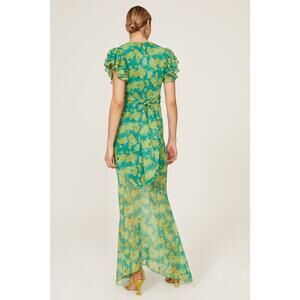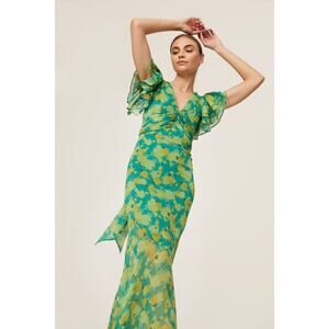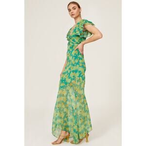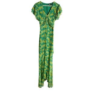 De La Vali Palmera Green Floral Short Sleeve V-Neck Maxi Dress Size 8