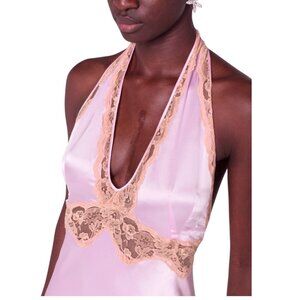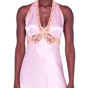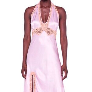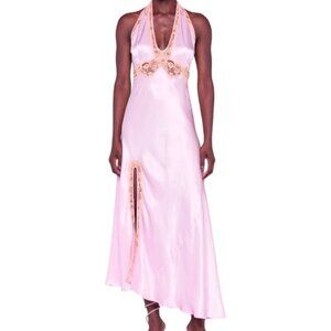 De La Vali Silk Flora Halter Dress Slip Dress NWT- $495-Size XS Pink Silk Dress