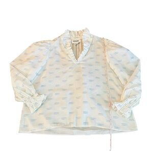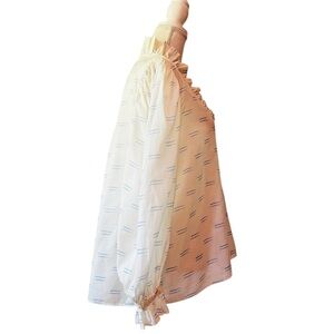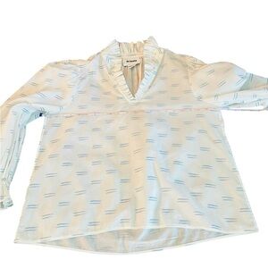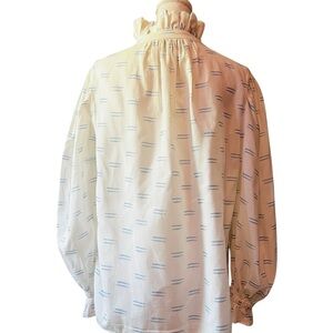 De Loreta Women's White and Blue Ruffle Long Sleeve Blouse Size Small