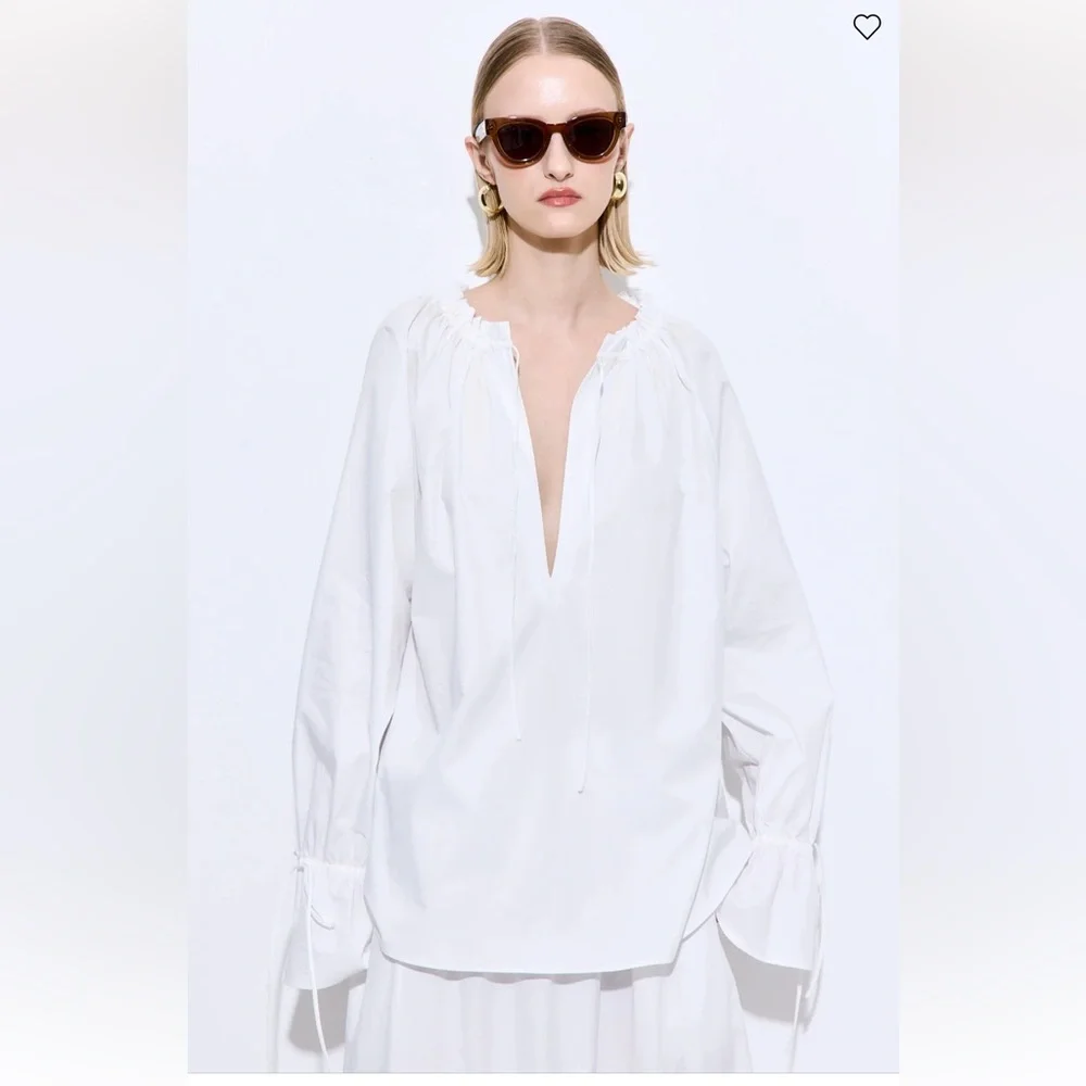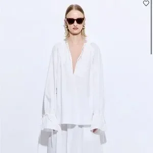 Like new! Ruffled Poplin Blouse is an effortless essential with a modern, feminine twist. Crafted from crisp, lightweight poplin with a soft structure. Oversized fit