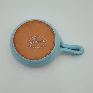 De Silva Blue Terracotta Handled Soup Chili Chowder Bowl, Baking Oven Pottery Dish. Excellent pre-owned condition. 5.75" round, 2" tall, 8.5" long including the handle.