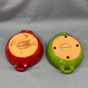 Pre-loved Lot of 2 De Silva Earthenware Terracotta Pottery Glazed Green Casserole Chili Bowl Italy