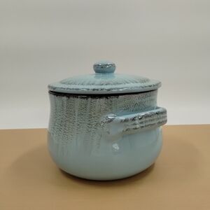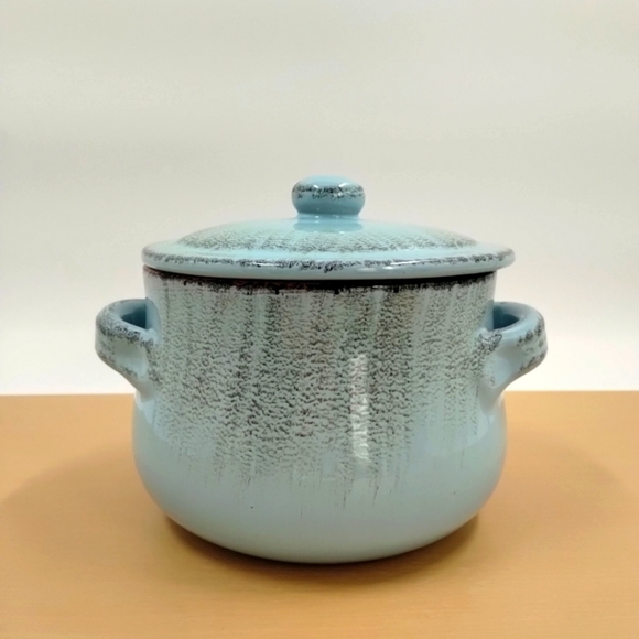 De Silva Terracotta Pottery Pot 6" x 7" Blue Cook Ware Casserole Soup Bean 48oz
