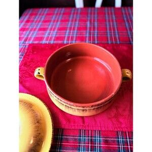 Excellent condition De Silva Italian covered casserole dish. Vintage glazed look on terracotta. There are a couple tiny chips in the glaze on the rim (see close up)