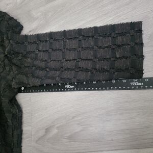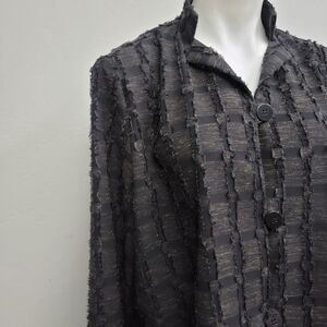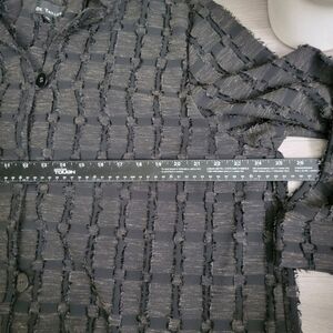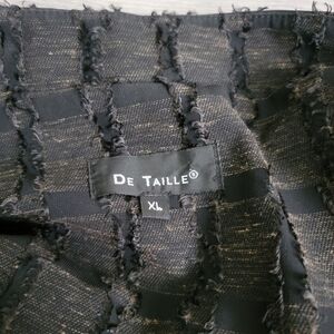 De Taille Black Brown Tunic Size XL Woven Block Textured Linen Tweed Fringe