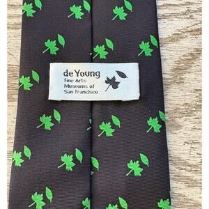 De Young Fine Arts Museum Silk Tie Black Green Leaf Print Made in USA ☘️