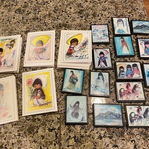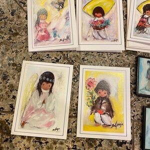 Five small vintage DeGrazia colorful beautiful notecards! With matching envelopes. I always meant to frame them! 14 vintage DeGrazia magnets. They aren’t as colorful as the cards but these are the colors I’ve always known them to be. Great shape and clean home! The base of the magnets feel like wood. It might not be wood but they aren’t bendable. Each have a square magnet in the back. They are really nice with sweet pictures on each. One of the magnets matches the card! Hard to find so many in one place!