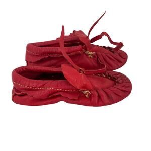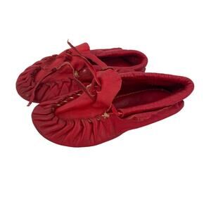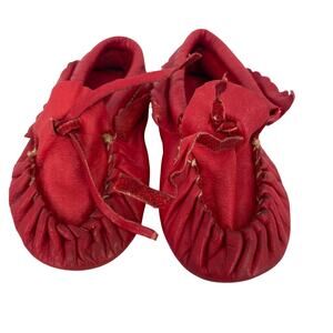 DeJas Moccasin Red Leather Baby Moccasins Slippers Size 4