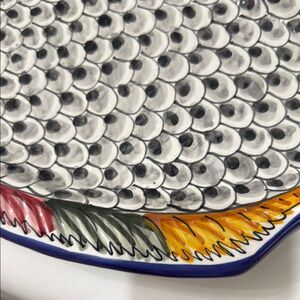 De La Cal Serving Platter Handpainted Artistic Blue Yellow Fish 10.5 X 10 Plate