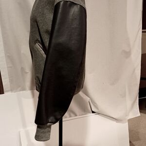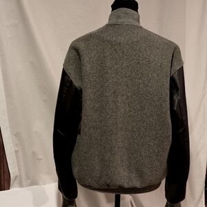 DeLong Varsity Men's Grey Wool Blend and Faux Leather Jacket