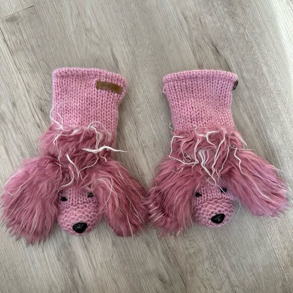 DeLux Pink Precious the Poodle Shaggy Dog Wool Mittens Fleece Lined - Youth Size. In good preowned condition, no flaws.
