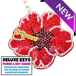 DeLuxe Keys Rhinestone Keychain/Purse Chain RED HIBISCUS