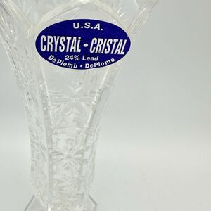 DePlomb 24% Lead Crystal Bud Vase Snowflake Design Pedestal 8" Winter No chips or cracks