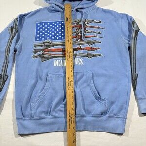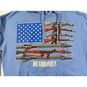 Dead Homies Blue Mens Graphic Gun & USA Flag Hoodie Pullover Sweatshirt Sz L