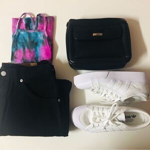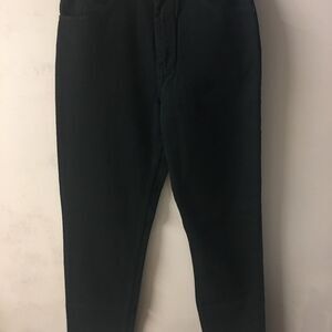 Perfect pair of vintage jet black jeans in a relaxed mom fit. Would look awesome with a cool printed crop top or a shirt tucked in and some white platform sneakers or Dr. Martens 1460s or any of the platforms. I wear all my jeans cuffed at the hem, but I don’t know if it’s because I’m short or I think they look better like that. Lol Approximate measurements shown in pictures. Feel free to ask questions or make an offer!