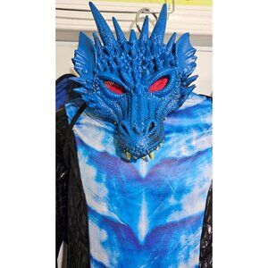 Deadly Dragon Kids Costume Black Blue scales Mask Tail Wings Halloween Boys 8-10