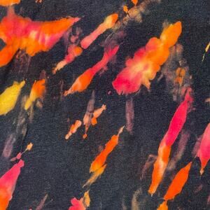 - bleach dyed to remove color, then reverse dyed in shades of red, orange & yellow
