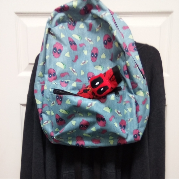 Package deal Deadpool Backpack, hoodie with socks is in great condition. Hoodie size 2xl socks size 10 -12. Only one in stock.