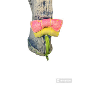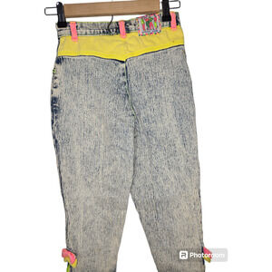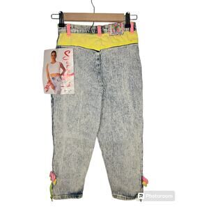 Deadstock 1980's stonewash Kids Capri Jeans Seruchi color block bows Size 5/6