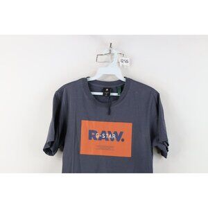 Deadstock G Star Raw Mens Size XS Spell Out Box Logo T-Shirt Steel Blue Cotton