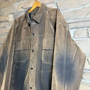 Deadstock Godbody Denim Technology Tan Cotton Faux Suede Jean Jacket Mens 3XL