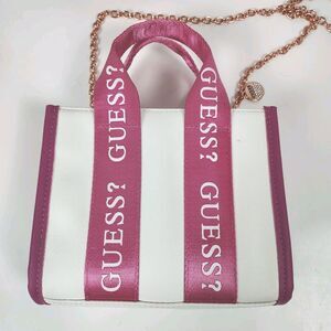 Deadstock Rare Cute Pink & White Guess Factory Logo-Tape Mini Tote Crossbody bag