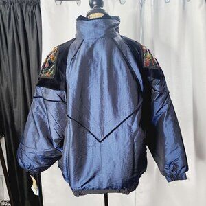 Deadstock Vintage 80s Iridescent Metallic Blue Floral Puffer Jacket
