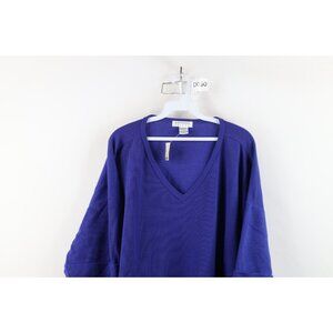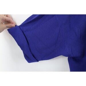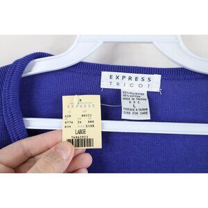 Deadstock Vtg 90s Express Womens L Blank Baggy Thermal Ribbed Knit T-Shirt Blue