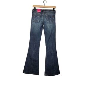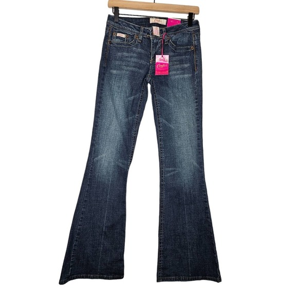 Deadstock Y2K Candies 1 Stretch Low Rise Jeans Bootcut Faded Wash Dark Boho. Waist is 14 in across, inseam is 33 in