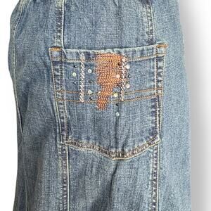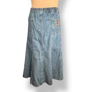 Deadstock Y2K Quaker Factory Denim Midi Skirt With Rhinestone Embroidery