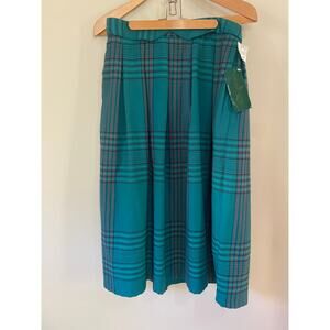 Deadstock vintage plaid pleated skirt teal/black /red size 16 pockets
