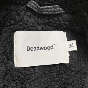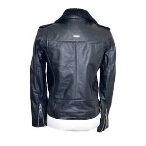 Deadwood Black Recycled Leather Biker Jacket with Faux Shearling Collar Size 34