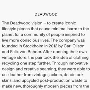 A leather jacket so good, it works with just about any outfit. Beautifully constructed, Deadwood's leather designs are made by hand from reclaimed hides and upcycled vintage clothing. This classic biker jacket has silver-tone hardware, zipped pockets and a snap-fastening waist tab. The leather has an authentically worn-in look and The deep burgundy leather has an authentically worn-in look and is fully lined. Wear yours with distressed denim and minidresses alike.