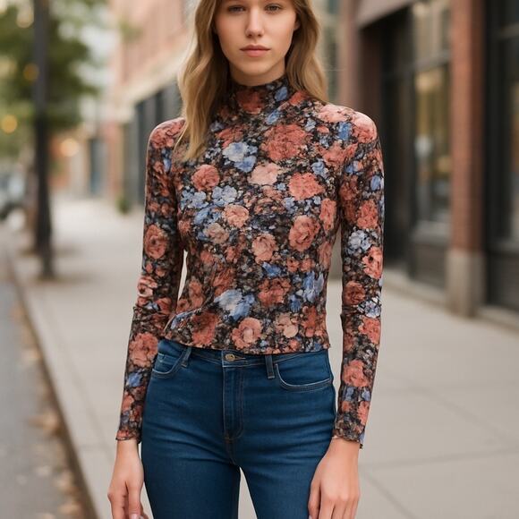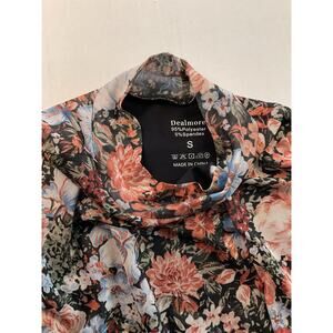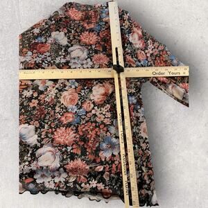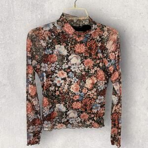 Dealmore Women’s Small Floral Mesh Long Sleeve Lined Mock Neck Top Boho Y2K