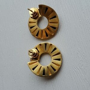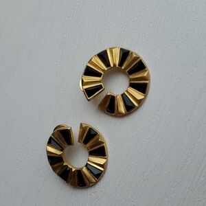 Dean Davidson Abstract Retro Black and Gold Hoop Stud Earrings MCM