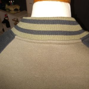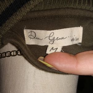 Army green and black button up jacket, some stretch, lightly worn *dress and necklace not included*