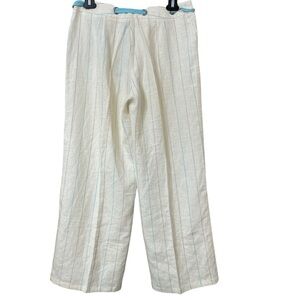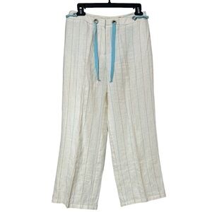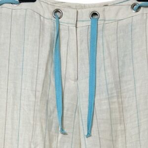 Deane & White Linen Pants Pastel Yellow w/ Stripes Zipper Fly Grommet Tie Waist