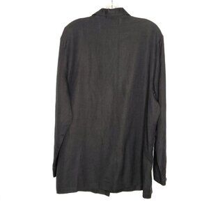 Deane & White Linen Tunic Top L Black Button Up Pockets Long Sleeve Lagenlook