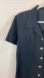 Solid black shift dress has large functional buttons down the front, short sleeves, a notched collar and belted back to accentuate the curves. Dress is fully lined. Lightweight linen blend fabric insures a comfortable fit that looks crisp and professional. Shoulder pads add structure.